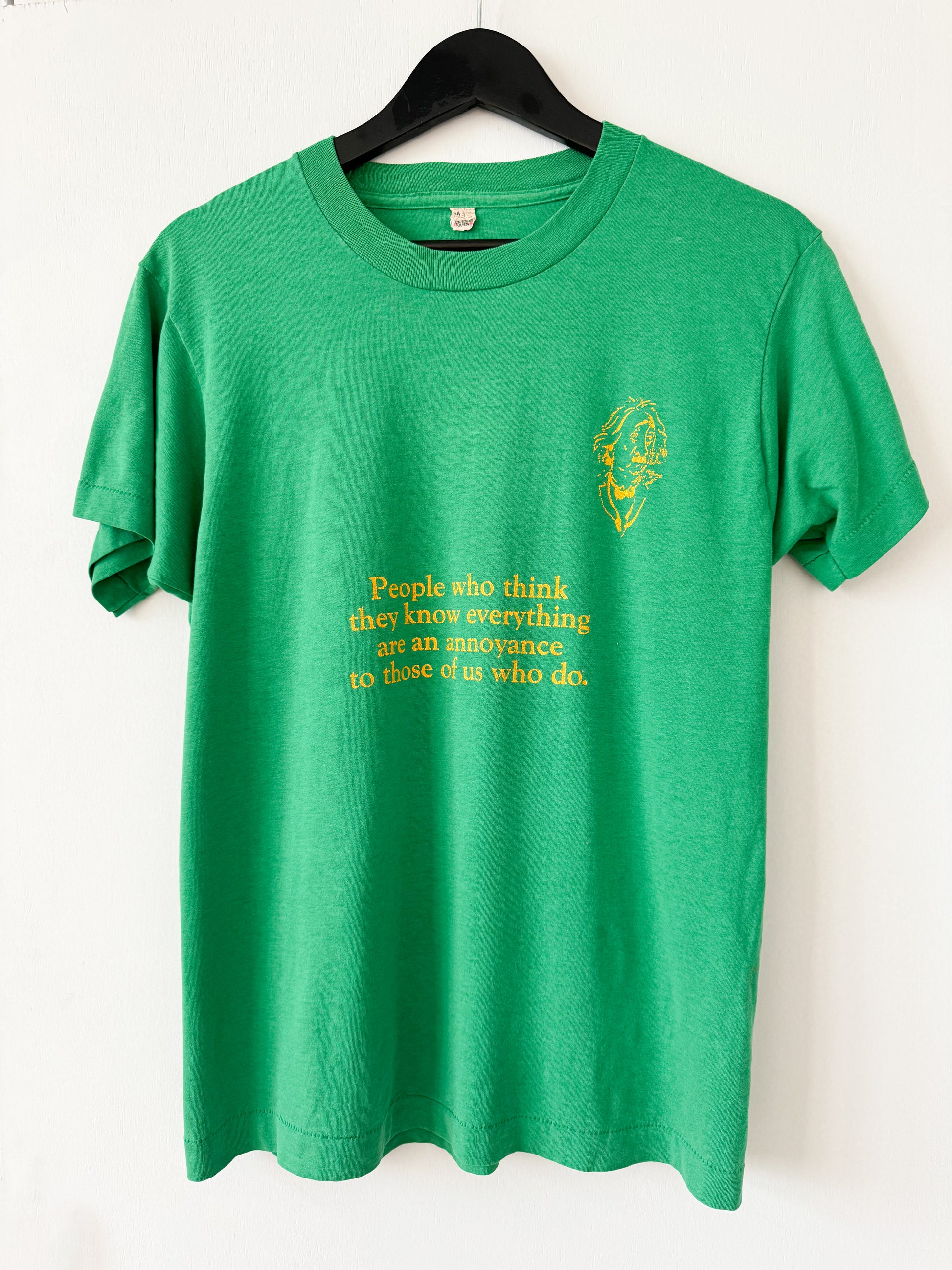 Vintage 1980s Einstein Quote Tee , Green with Yellow Print (Size : Shoulder 17” / Chest 19” / Length 26”)