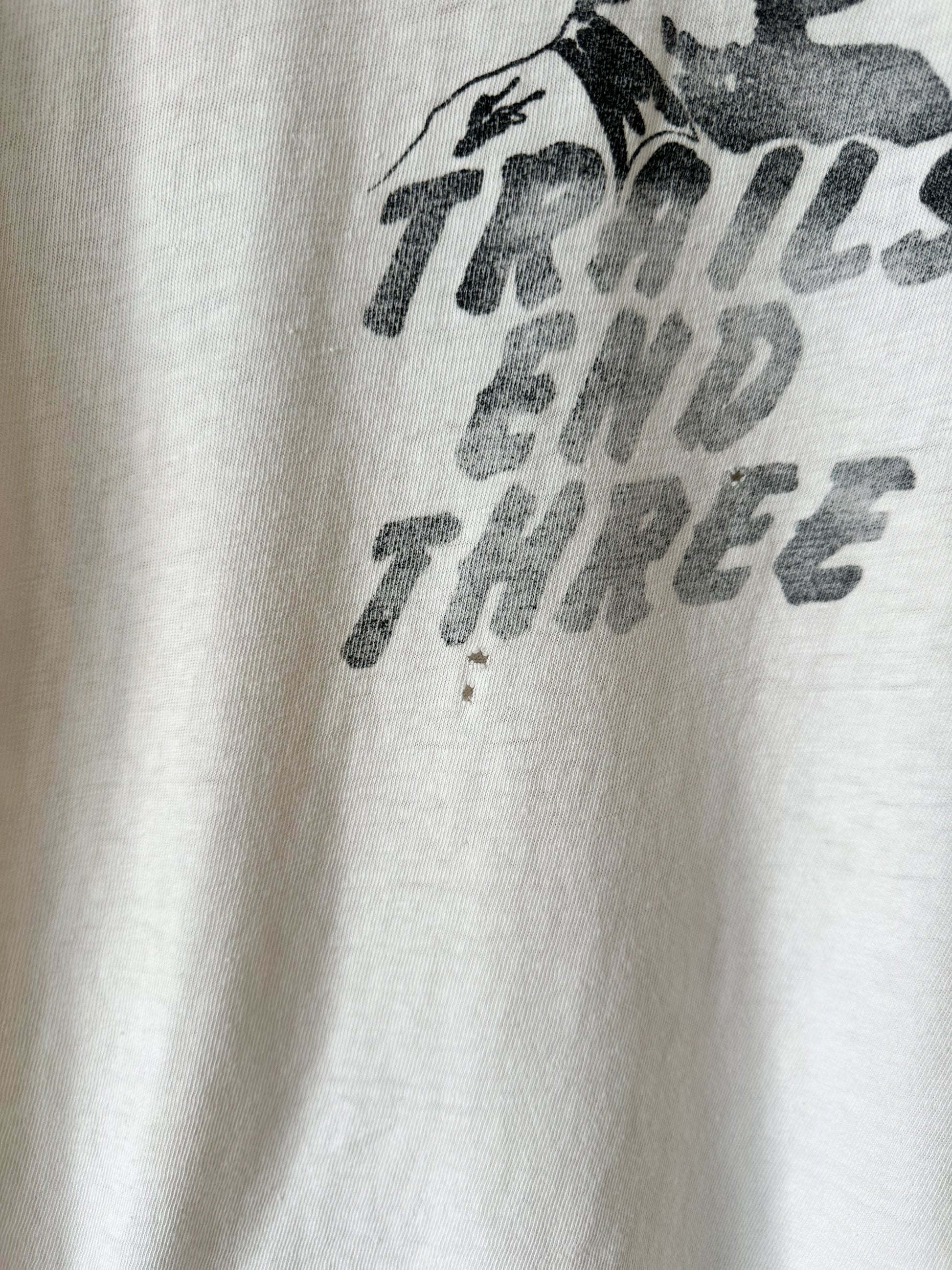 Vintage 1970s Kansas City Trails End Three Tee , White with Black Print (Size : Shoulder 17” / Chest 19” / Length 25”)