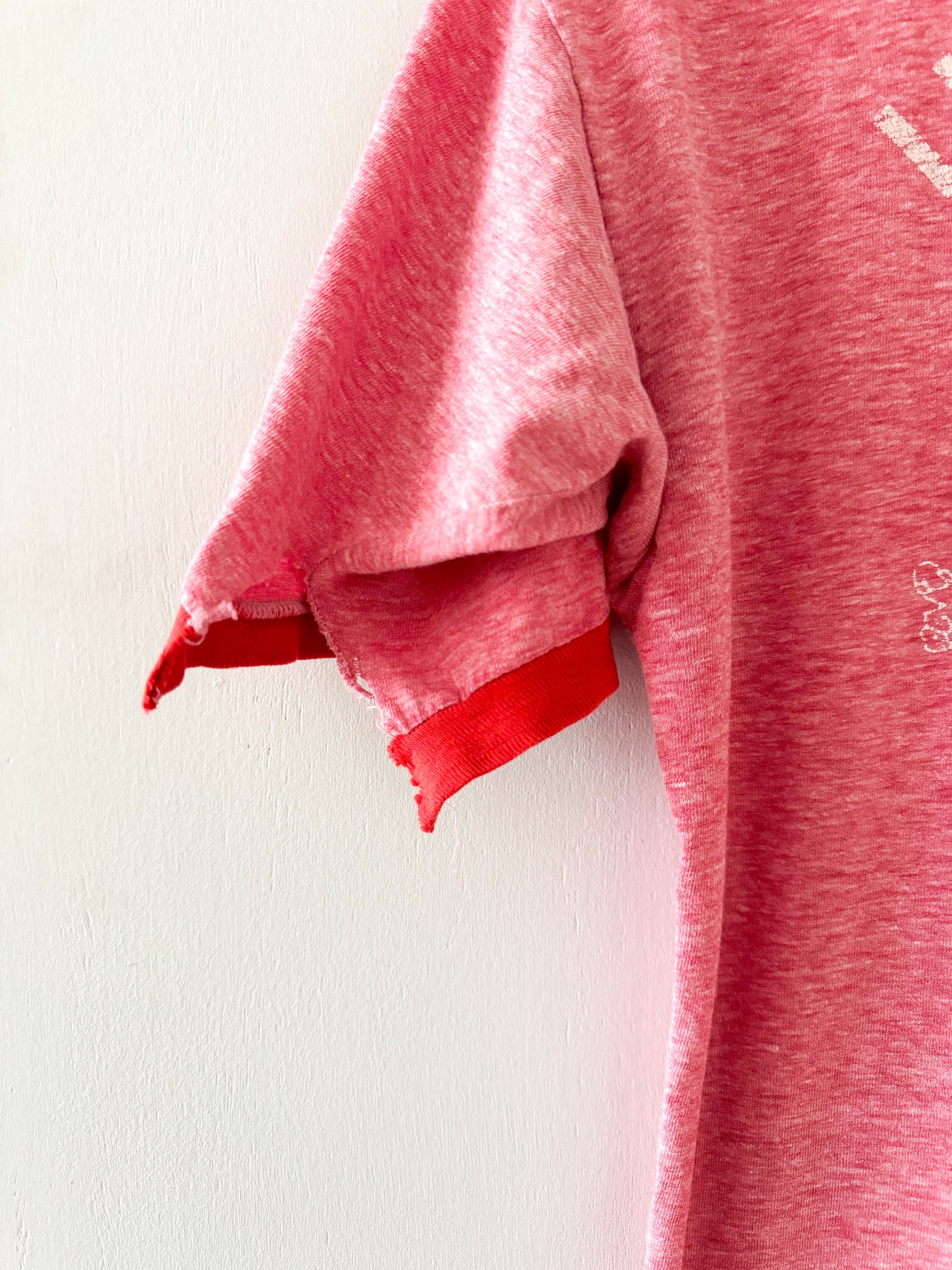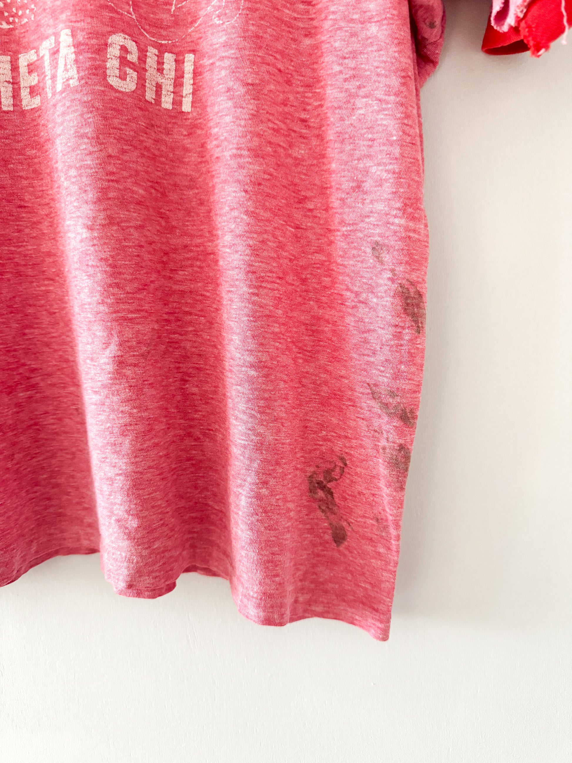 Vintage 1980s Theta Chi Little Sister Ringer Tee , Heather Red with White Print , made in usa