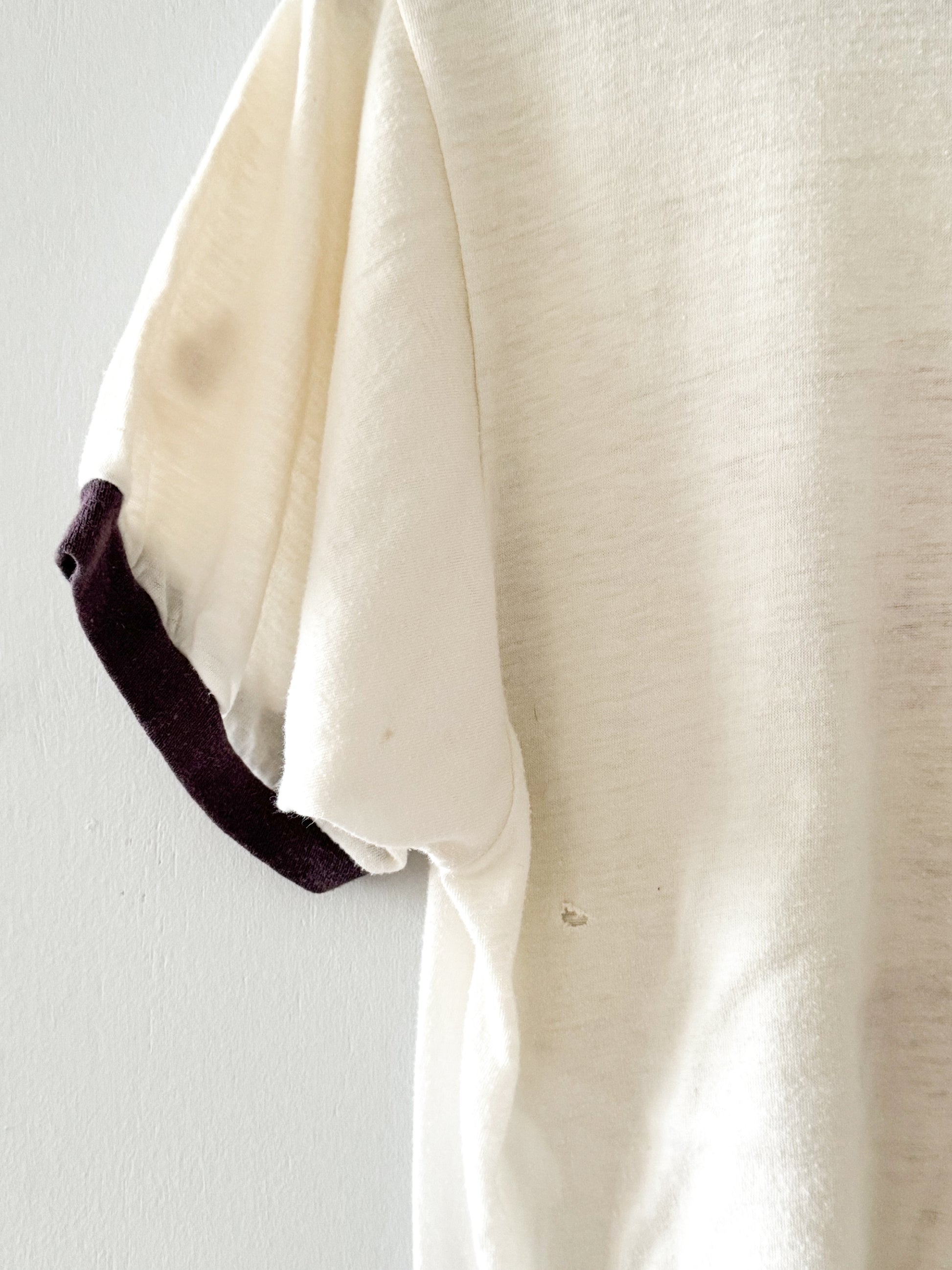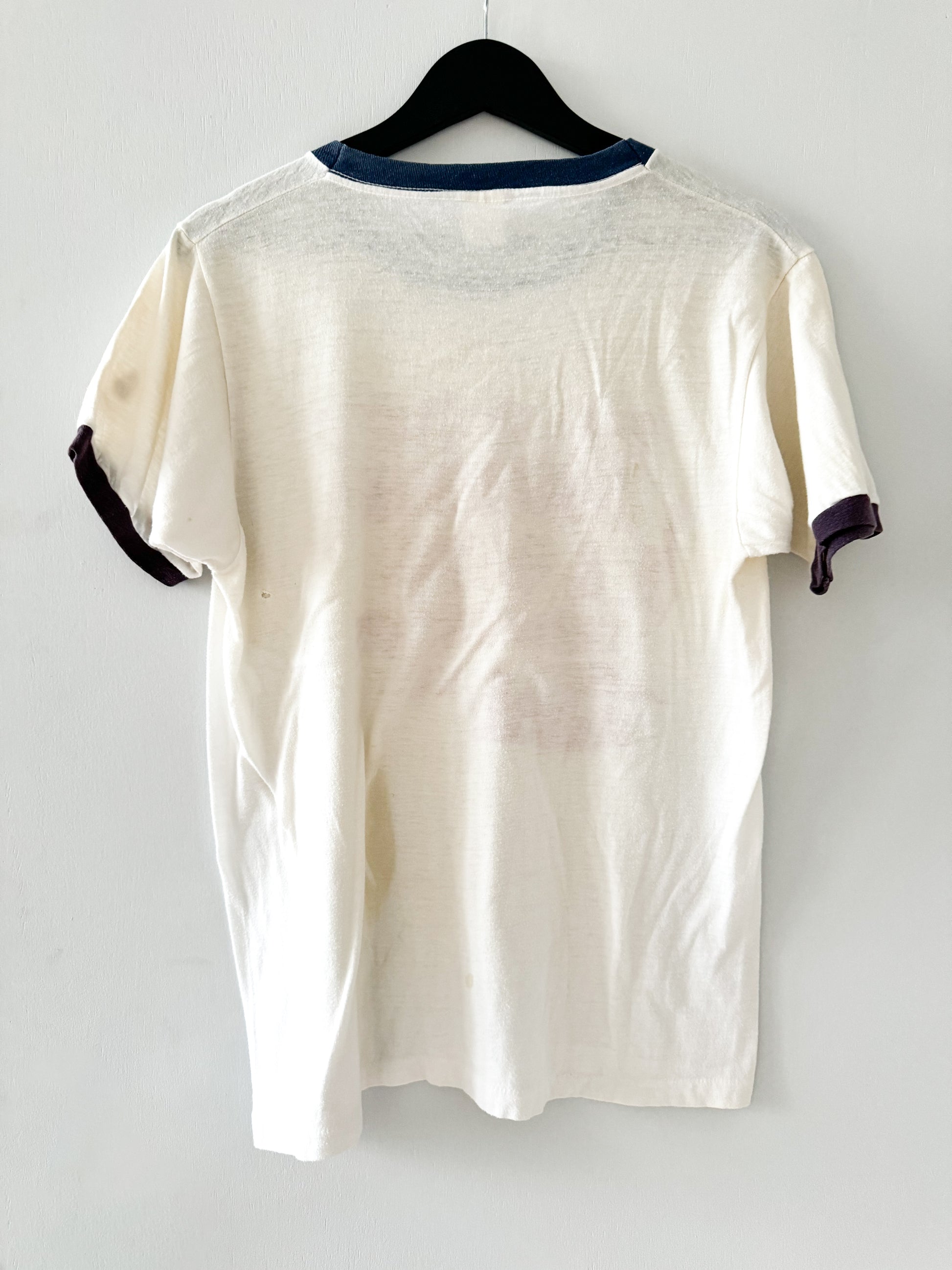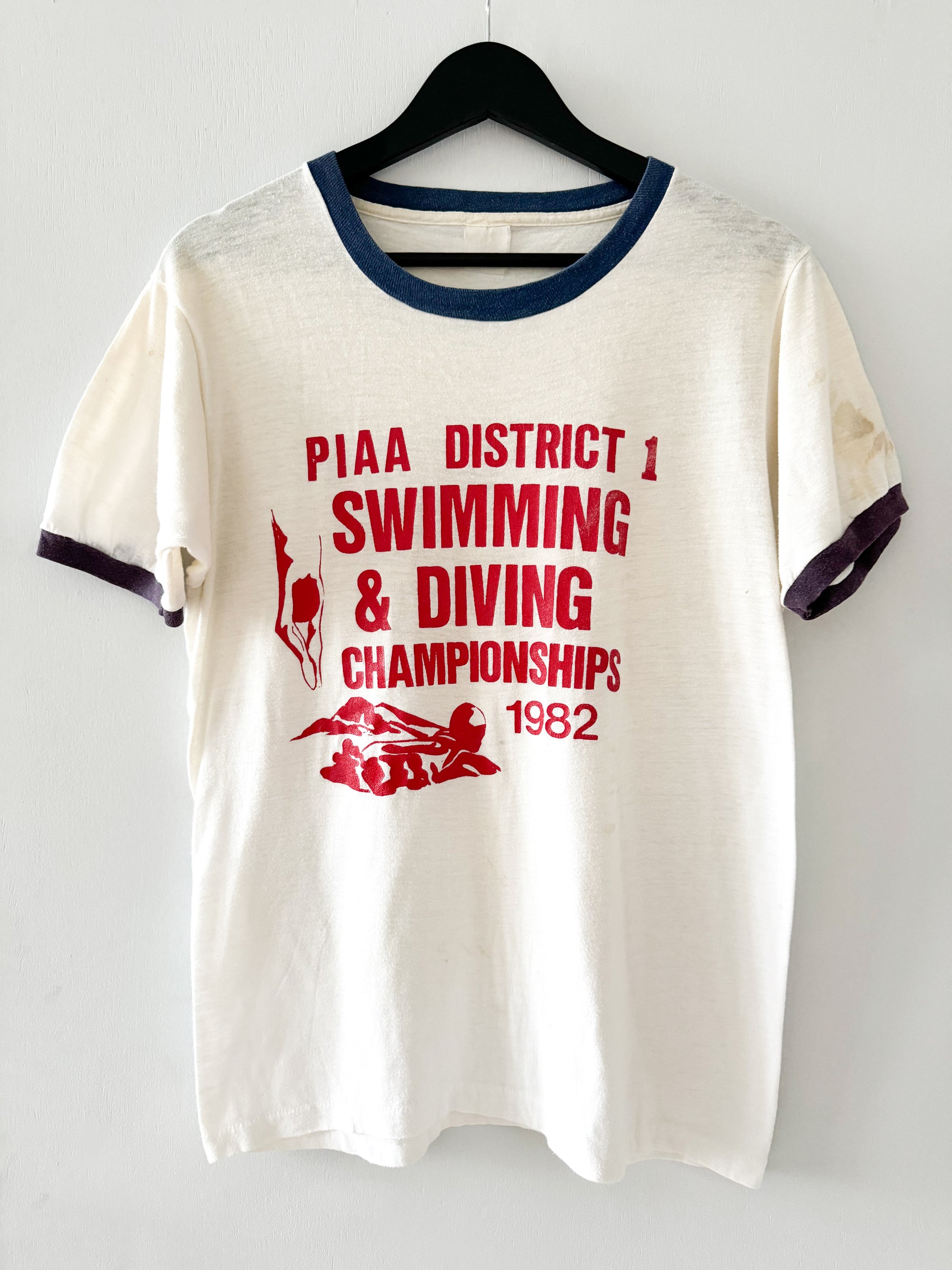 Vintage 1980s PIAA Swimming & Diving Championships Tee , White with Red Print and Navy Ringer , made in usa