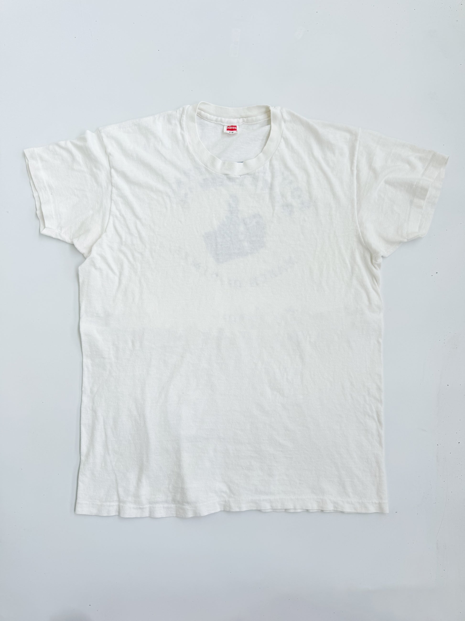 Vintage 1970s Hanes Southern Utah Marathon ‘76 Tee , White with Blue Print (Back Hit) , made in usa (Size : Shoulder 18” /Chest 21” /Length 26”)