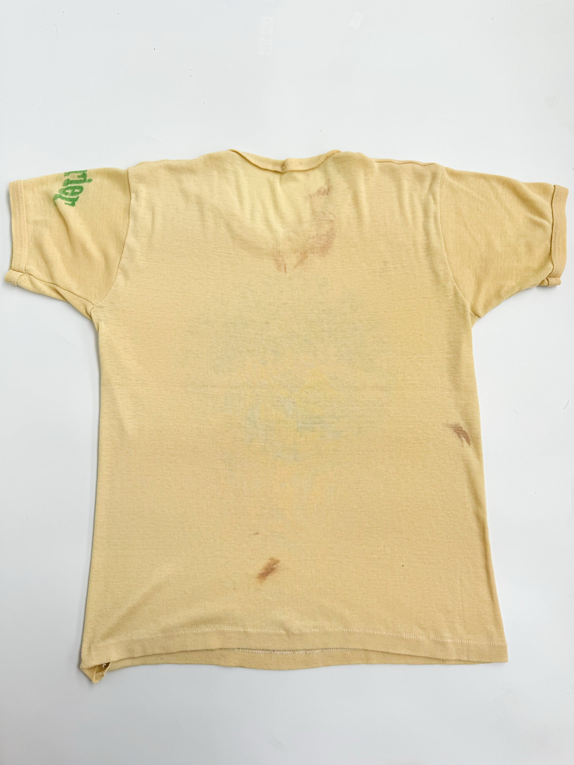 Vintage 1970s New York City Marathon ‘79 Tee , Faded Yellow with Green Print , made in usa (Size : Shoulder 17” /Chest 18.5” /Length 23”)