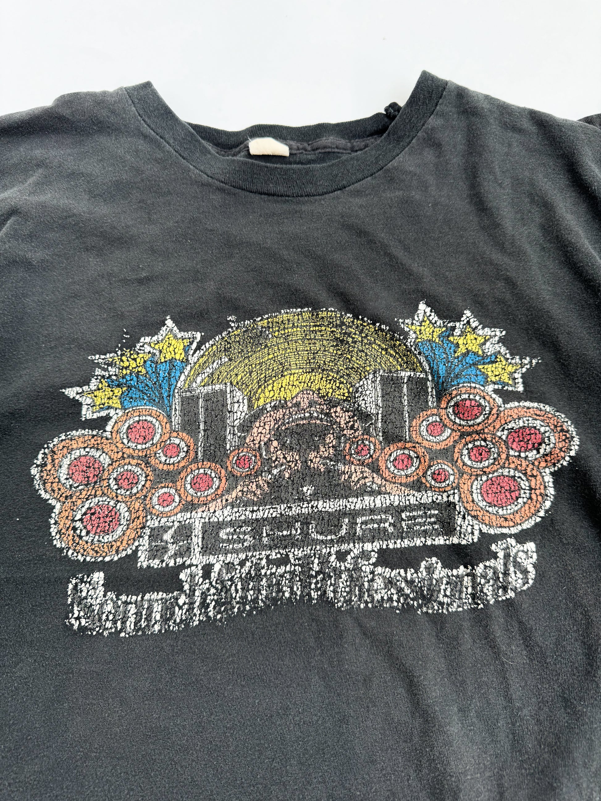Vintage 1970s Shure Sound Reinforcement Tee , Black with Multicolor Print , made in usa (Size : Shoulder 18” /Chest 21” /Length 25”)