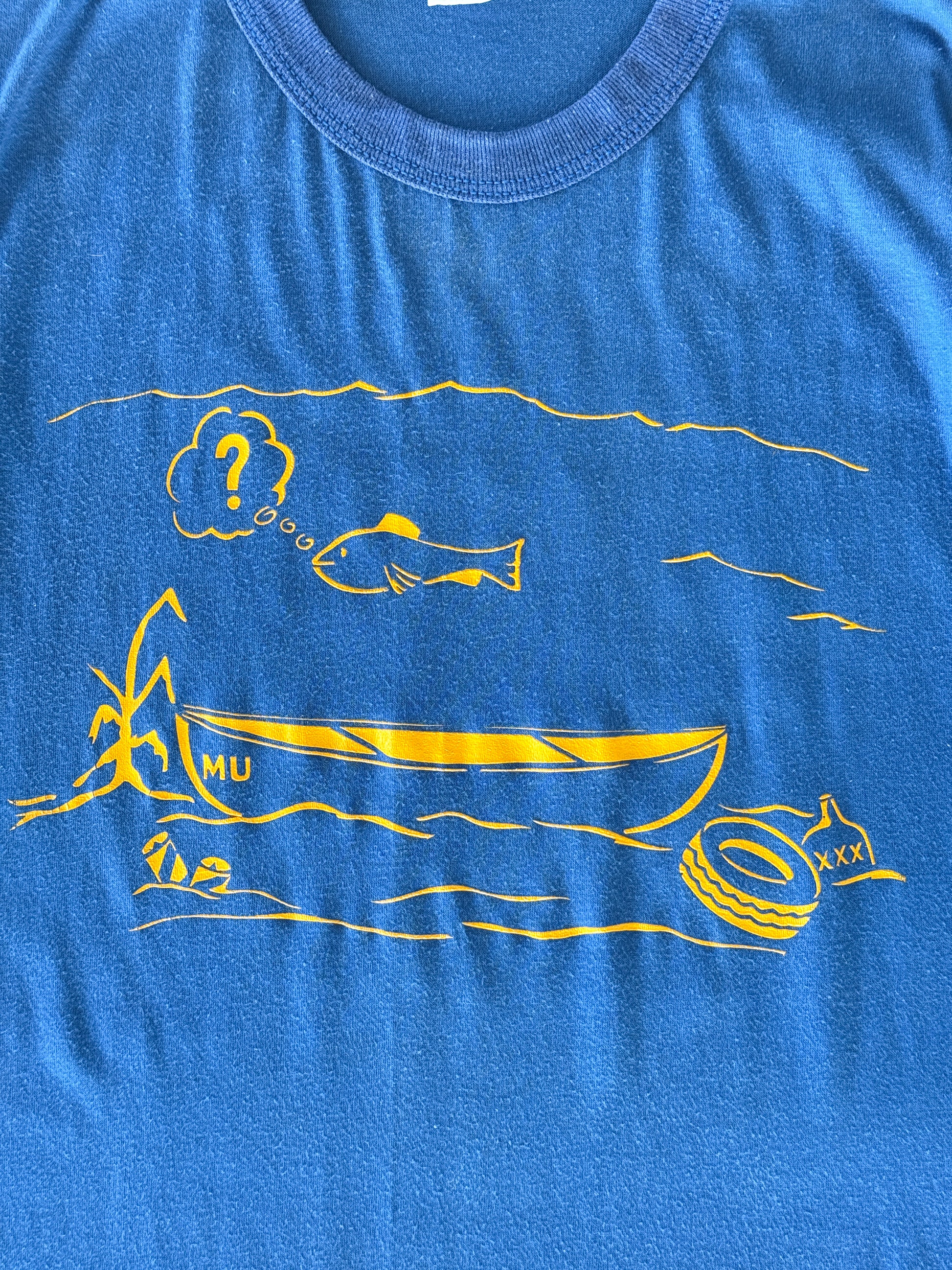 Vintage 1980s Canoe & Fish Print T-Shirt , Blue