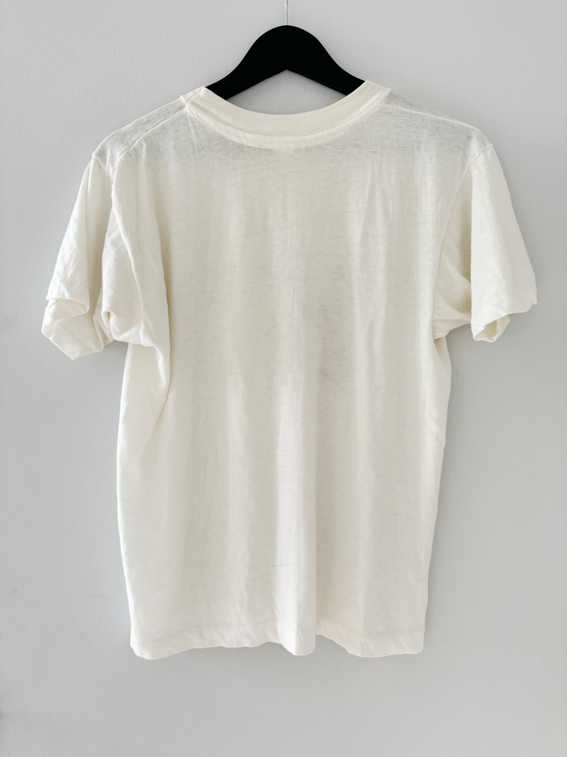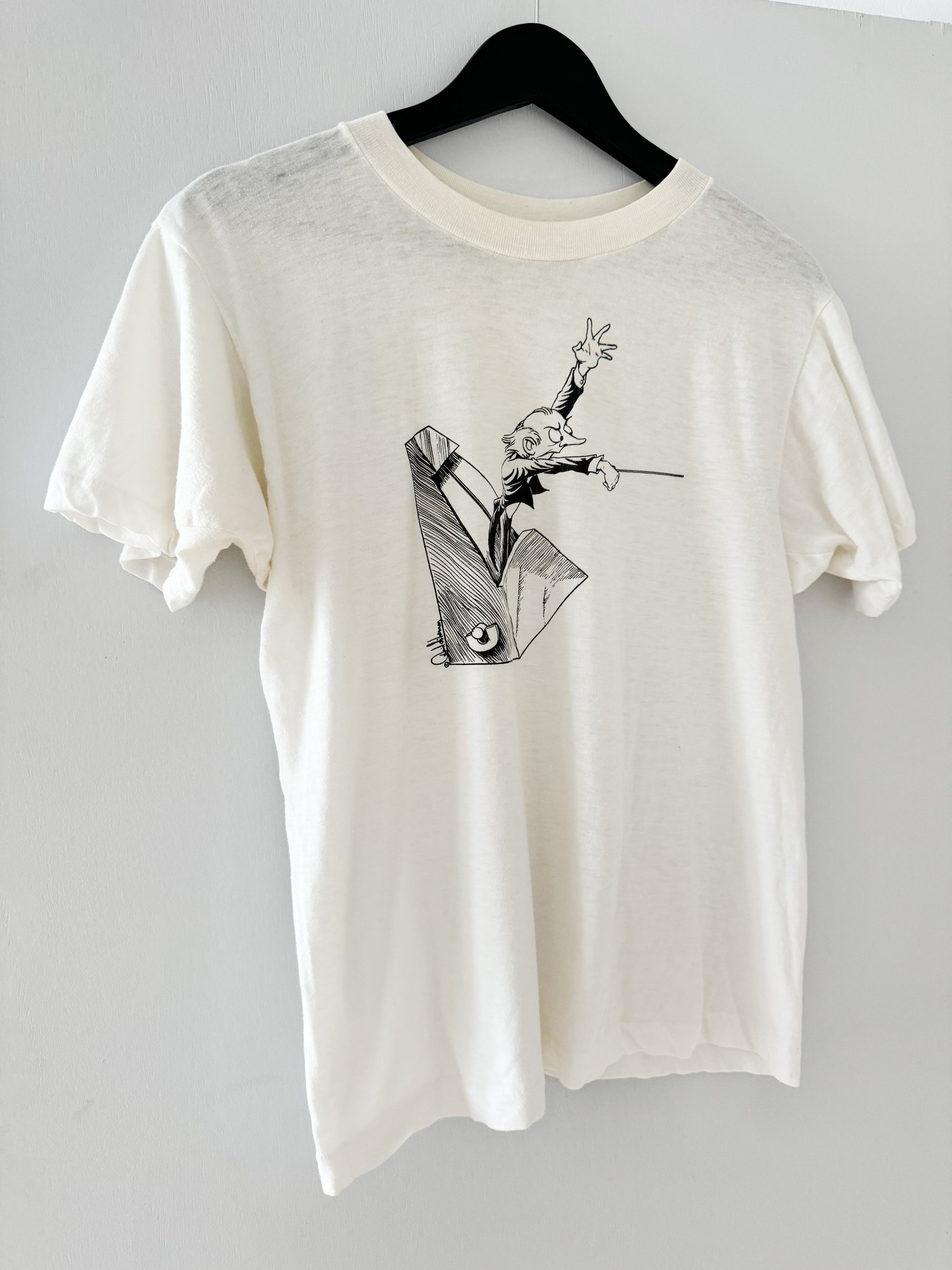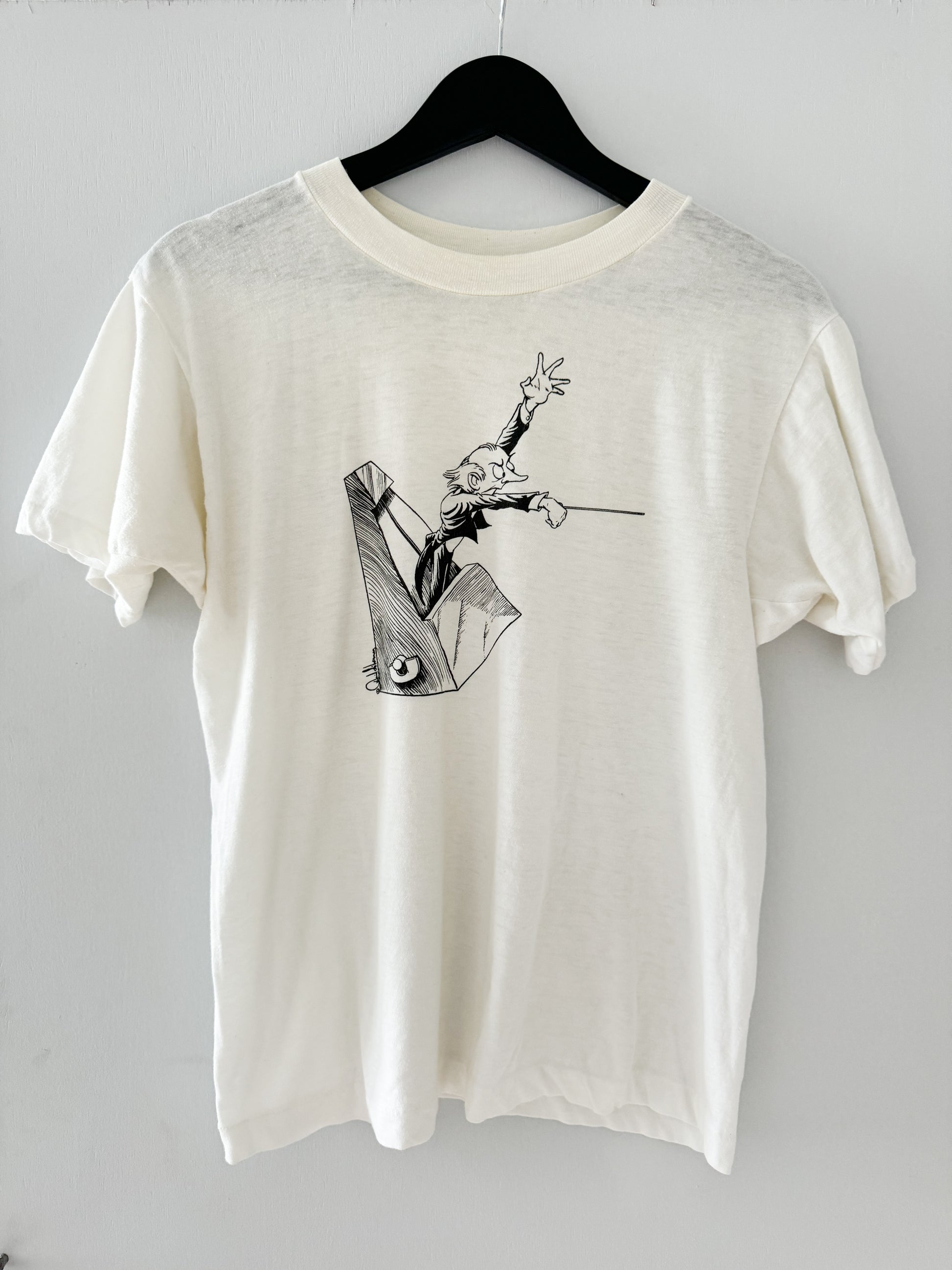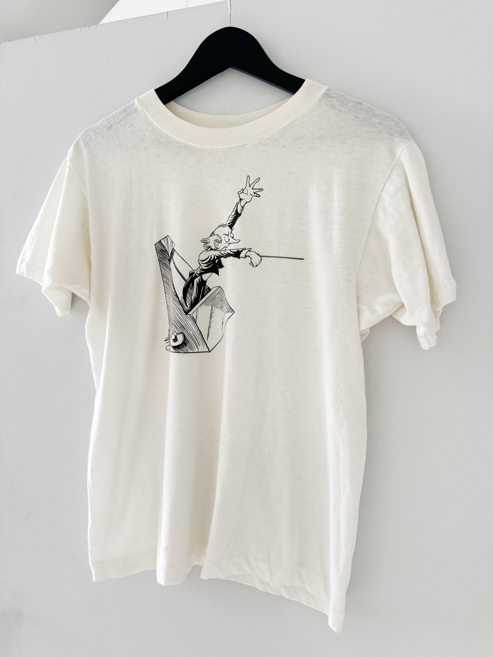 Vintage 1980s Conductor Illustration Tee , White with Black Print , made in Mexico