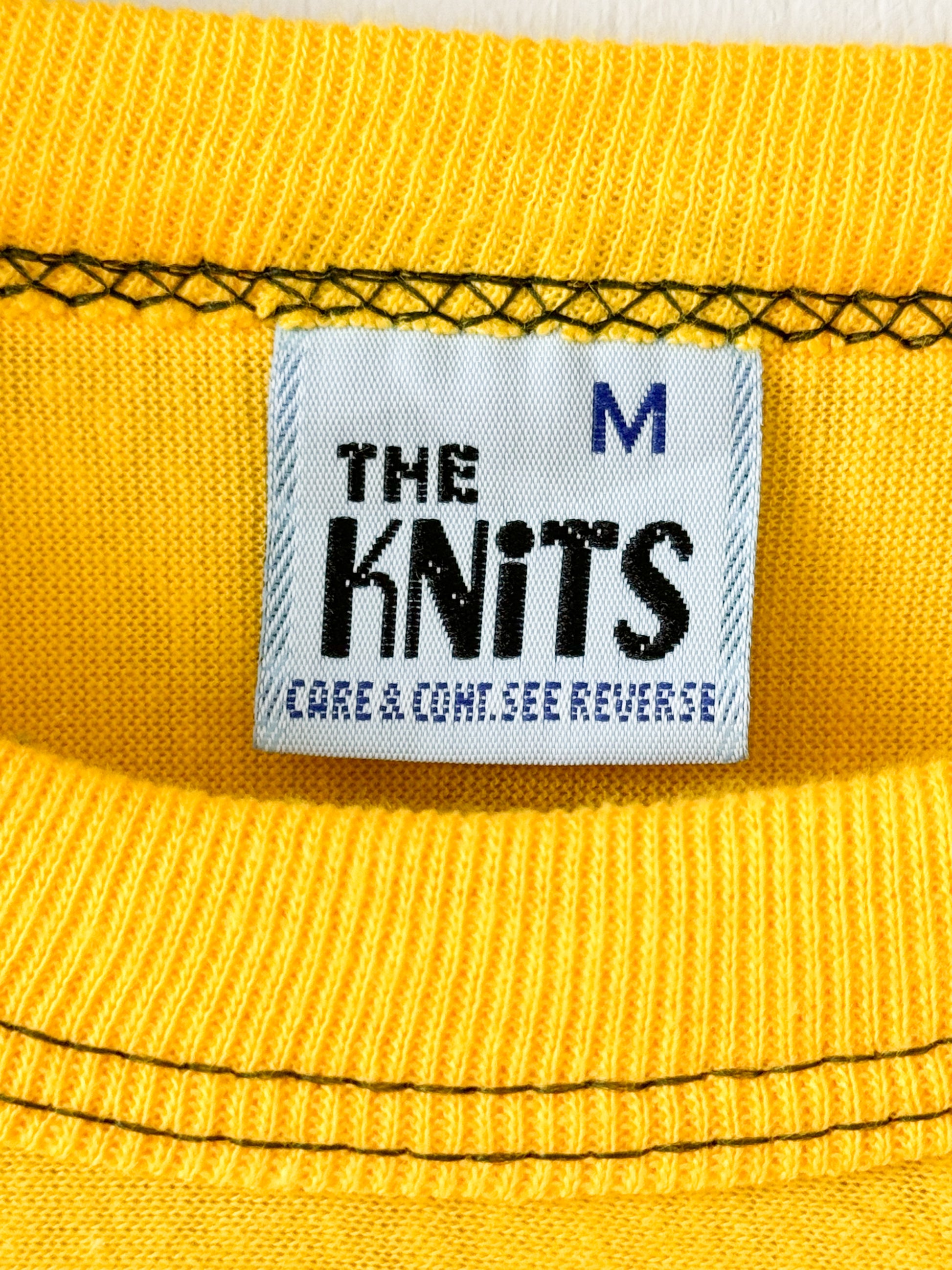 Vintage 1980s D.B. Cooper Tee , Yellow with Blue Print (Size : Shoulder 17” / Chest 18” / Length 27”)